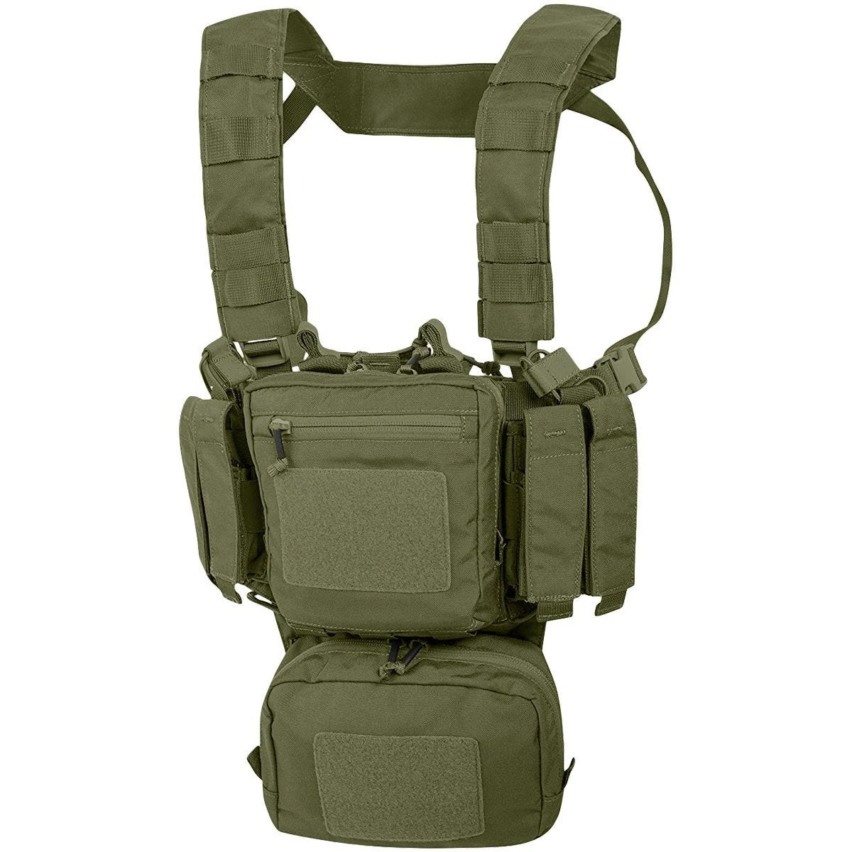 This quality chest rig, designed to work along with a backpack and belt